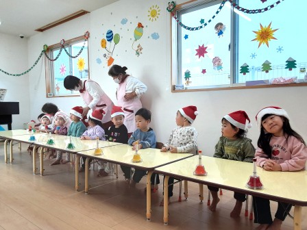 えつこ先生と一緒にベルを鳴らして手遊びをします😊