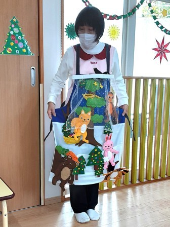 大富先生が「みんなでつくったクリスマスツリー」のエプロンシアターをしてくれました😊
