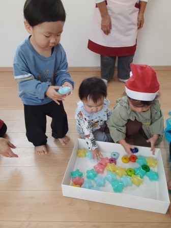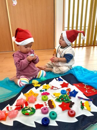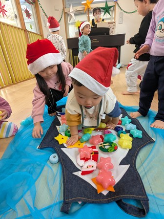 音楽に合わせて飾りを探して、みんなでクリスマスツリーを飾ります🎄