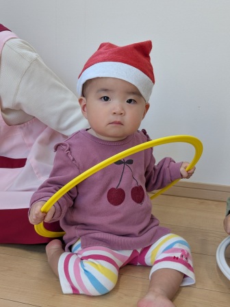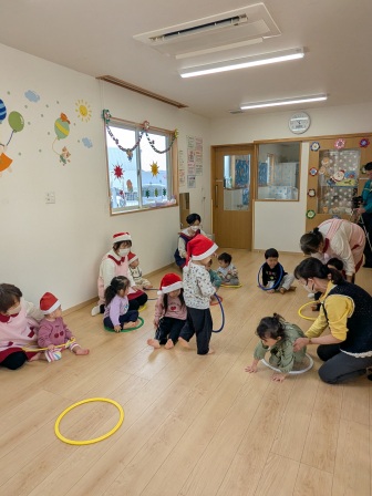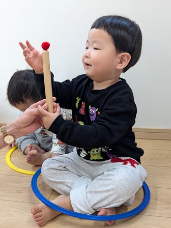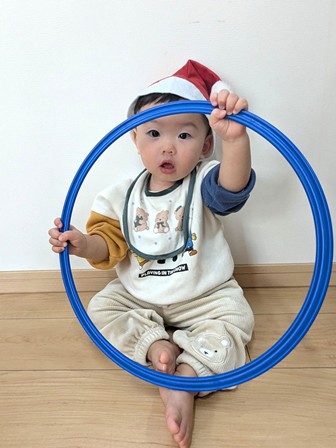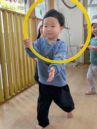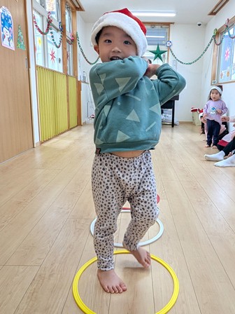 次はリズムに合わせてジャンプしたり、フープのソリ🛷に乗ってお散歩です😊