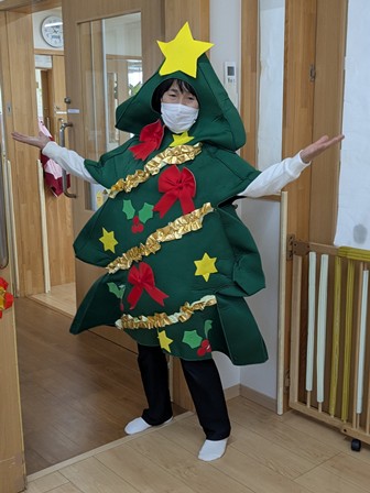 さっきみんなが飾ったクリスマスツリーが登場😯