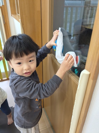 棚だけでなく、床や壁、窓も拭いてくれました🧹